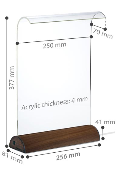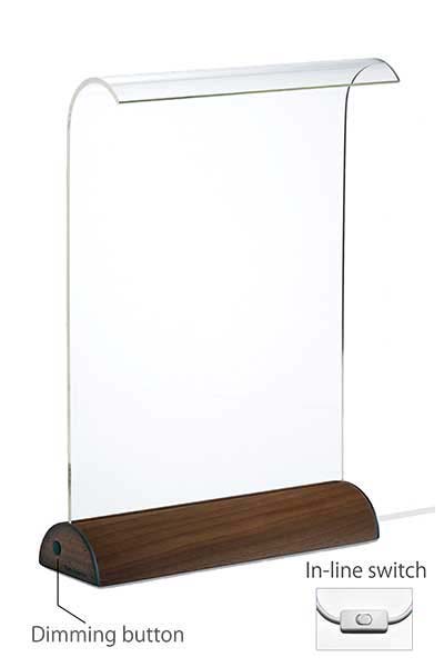 Hard-coated acrylic waveguide. Natural walnut veneer base with wood end plates. Internal aluminium heat sink. |